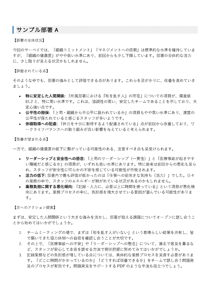 単に組織の状態を「測る」だけでなく、「動く」ための具体的な指針を示します。