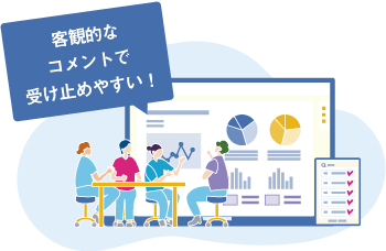 お返しする結果は大きくわけて「全部署概況一覧」「AIフィードバック」「結果シート」の3つから成っています。