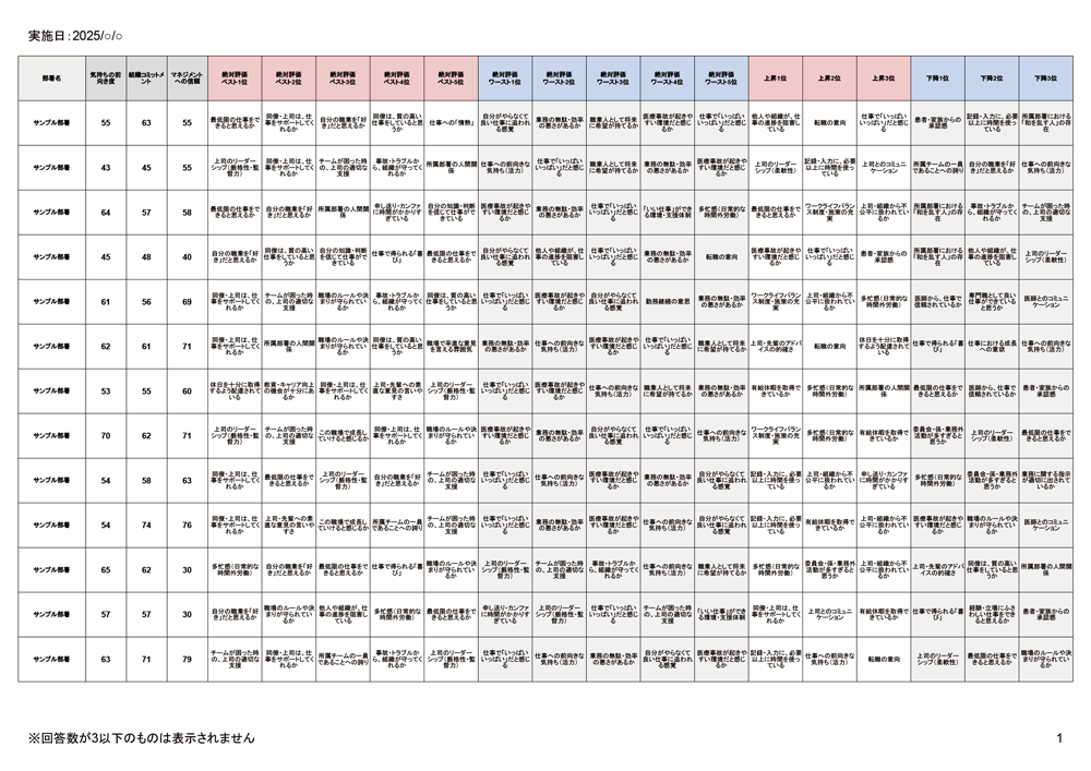 MCサーベイでは、難しいデータを読み取ることなく、 「この部署の全体状況」と「取り組むべき課題の優先順位」、「具体的なマネジメント改善のアクション」がわかります。